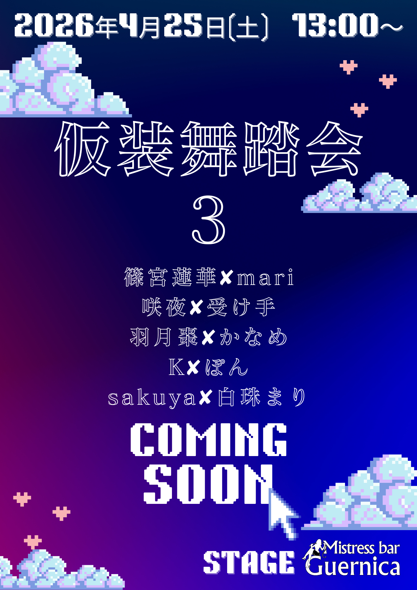 Mistress bar Guernica ゲルニカで刺激的な非日常の空間をお楽しみください。皆様のお越しをお待ちしております。Enjoy the exciting and extraordinary atmosphere at Mistress Bar Guernica. Beginners are welcome. We look forward to seeing you.