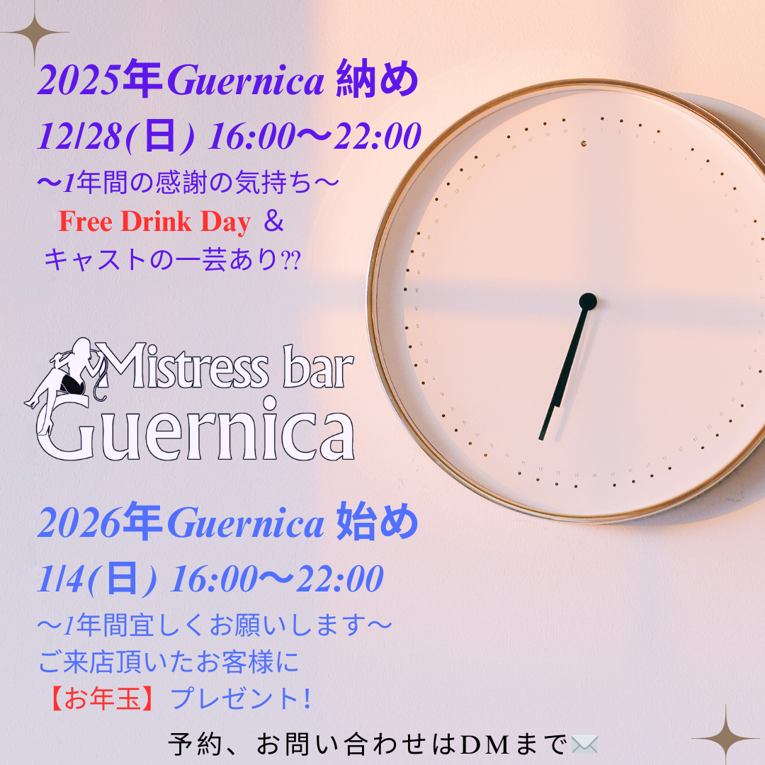 Mistress bar Guernica ゲルニカは個性豊かなキャストが在籍している『SMバーが初めての方』でも楽しめるお店です。フェティッシュな話はもちろん、SM体験や広い空間を活用したプレイも体験できます。勿論、ベテランの方も楽しめます。非日常を体験しましょう!!