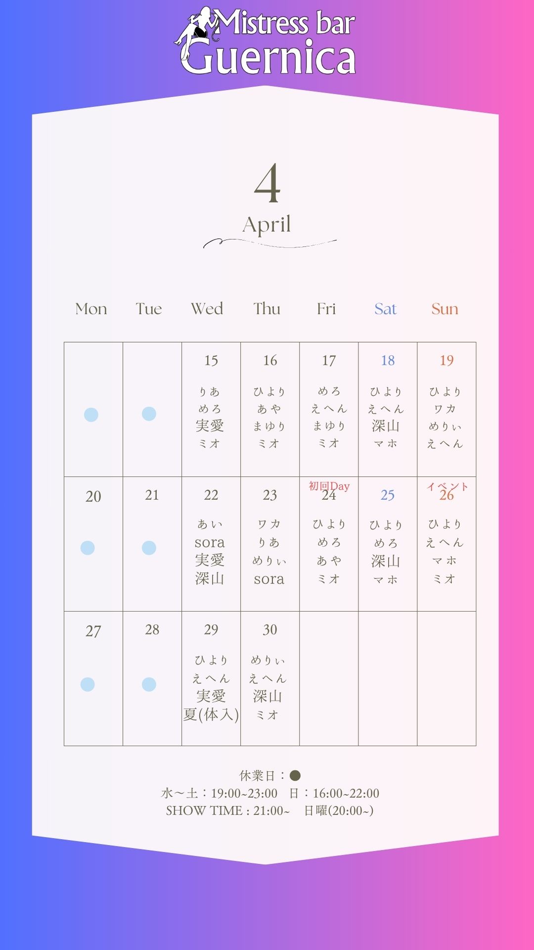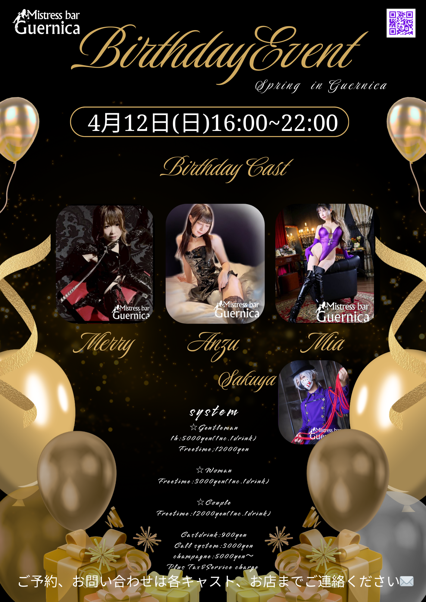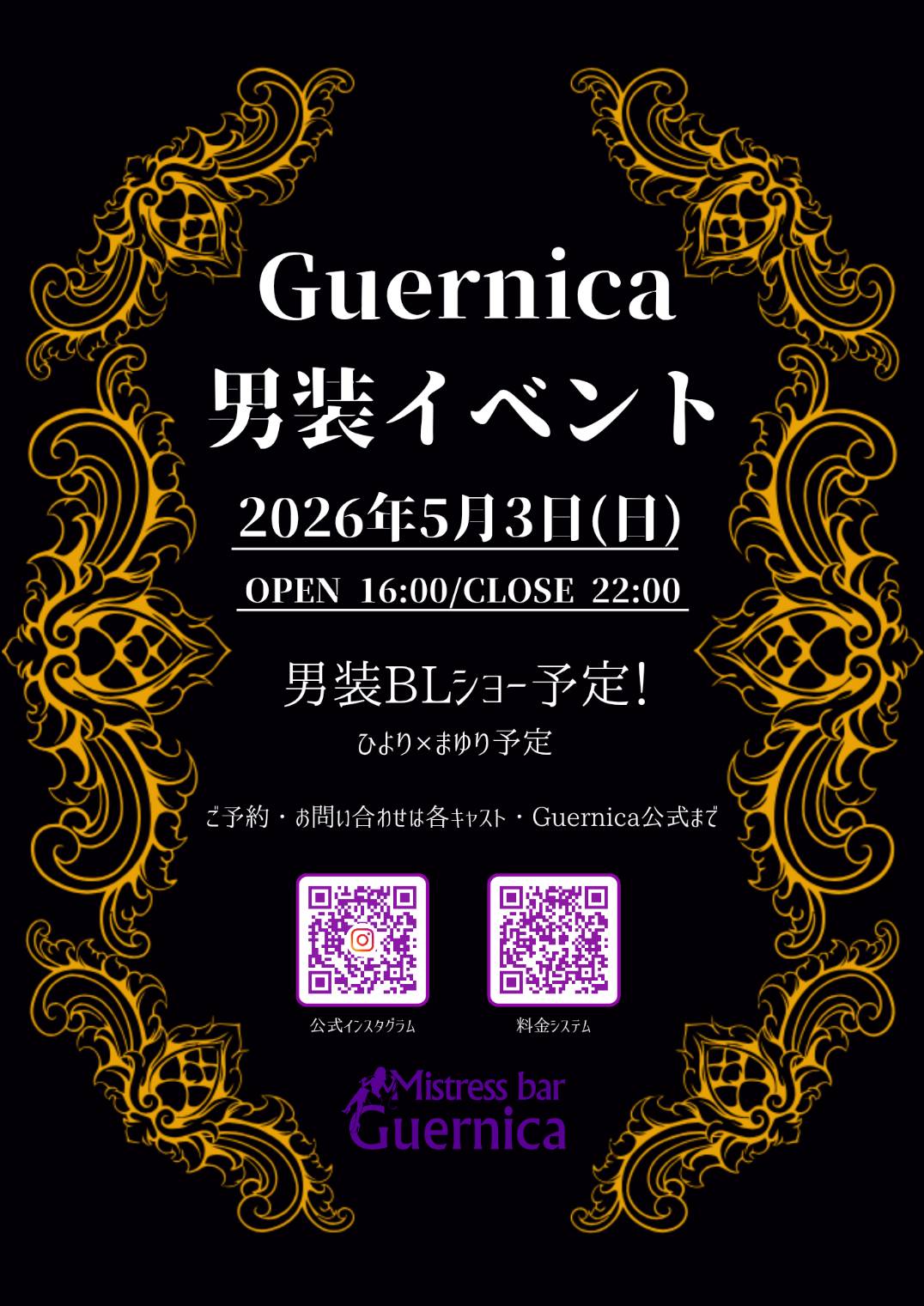 Mistress bar Guernica ゲルニカで刺激的な非日常の空間をお楽しみください。皆様のお越しをお待ちしております。Enjoy the exciting and extraordinary atmosphere at Mistress Bar Guernica. Beginners are welcome. We look forward to seeing you.